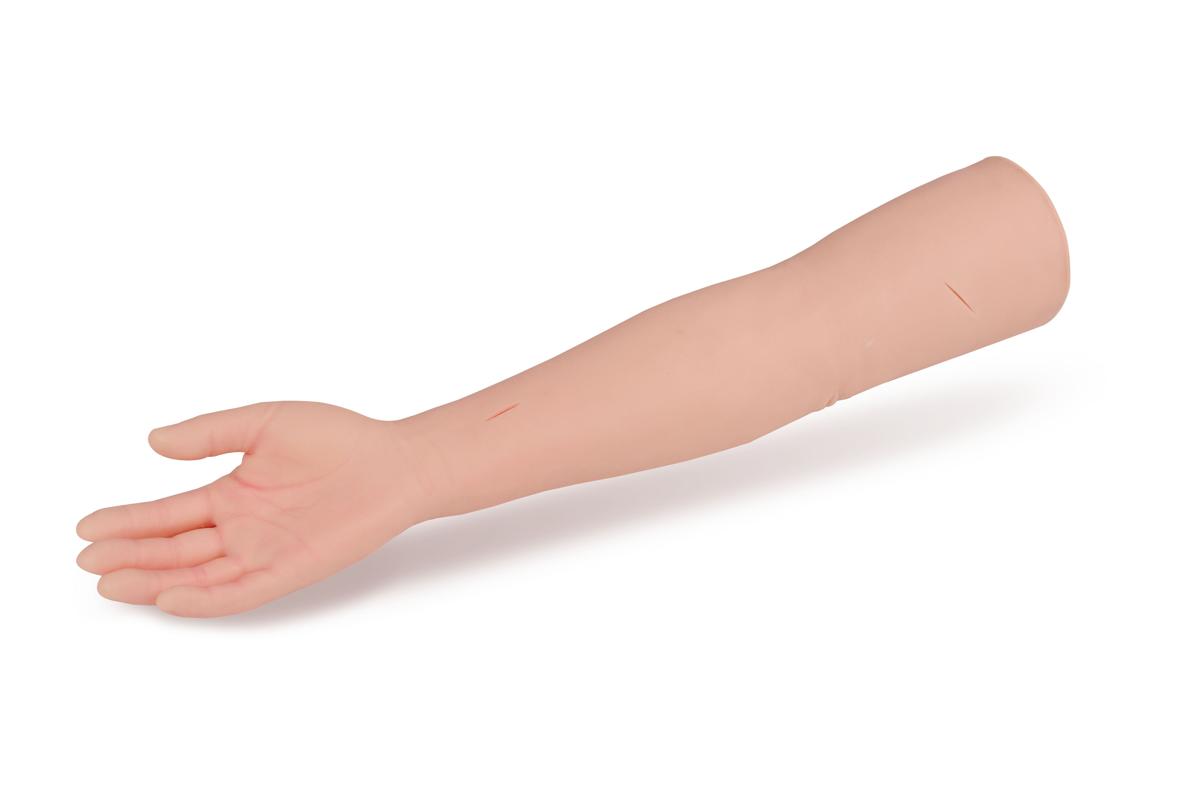 Фантом представляет собой руку взрослого человека от плеча до кончиков пальцев с реалистичными анатомическими ориентирами (локтевой ямкой, ладонь, фалангами пальцев). Кожа манекена выполнена из материала, реалистично имитирующего кожный покров.
